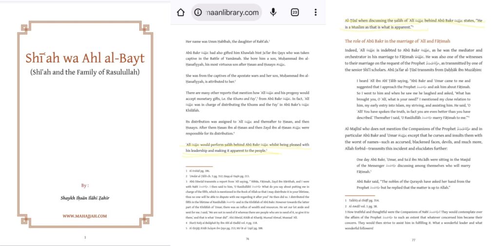 Zahīr’s false claim that that Shia Scholars affirm the Imam Ali (as) deemed the caliphate of Abu Bakr legitimate