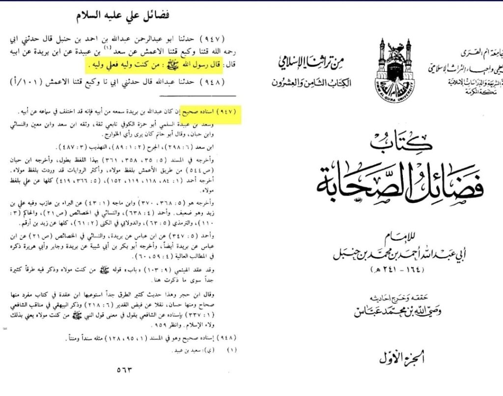 In Kitāb Faḍāʾil al-Ṣaḥāba (Hadith 947, p. 563):